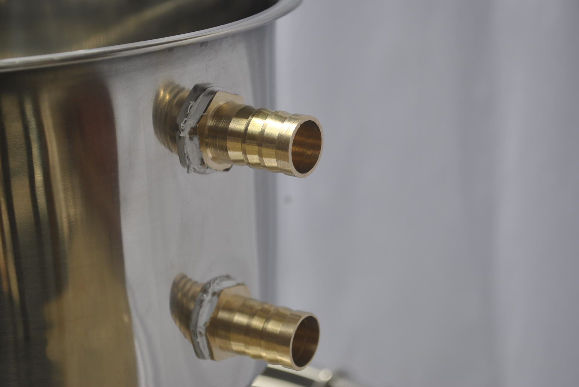 桶蓋升級,即日起都發打2個孔的桶蓋,一個冷凝器孔,一個溫度計孔,少打一個排氣閥孔,用冷凝器時候用不到排氣閥,排氣閥是做發酵桶時候才能用到,新款少打一個口,密封更好,直接安裝冷凝器口,就不用堵住了,老款蒸餾時候是關閉排氣閥,蒸餾時候沒有任何作用,做發酵桶使用老款也是要去掉冷凝器,然後把冷凝器孔堵住,在打開排氣閥使用,老款設計存在缺陷,此新款少打一個孔,功能沒有任何損失,設備設計更完美。
